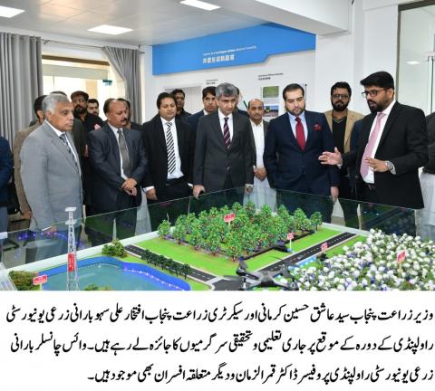 وزیر زراعت پنجاب سید عاشق حسین کرمانی اور سیکرٹری زراعت پنجاب افتخار علی سہو کا بارانی زرعی یونیورسٹی راولپنڈی کا دورہ۔