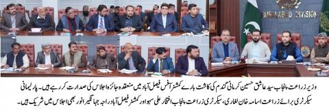 وزیر زراعت پنجاب سید عاشق حسین کرمانی کی زیرِ صدارت کمشنر آفس فیصل آباد میں گندم کی کاشت بارے جائزہ اجلاس کا انعقاد