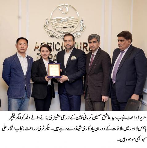 وزیر زراعت پنجاب سید عاشق حسین کرمانی سے چینی زرعی مشینری بنانے والے وفد کی ایگریکلچر ہاؤس لاہور میں ملاقات