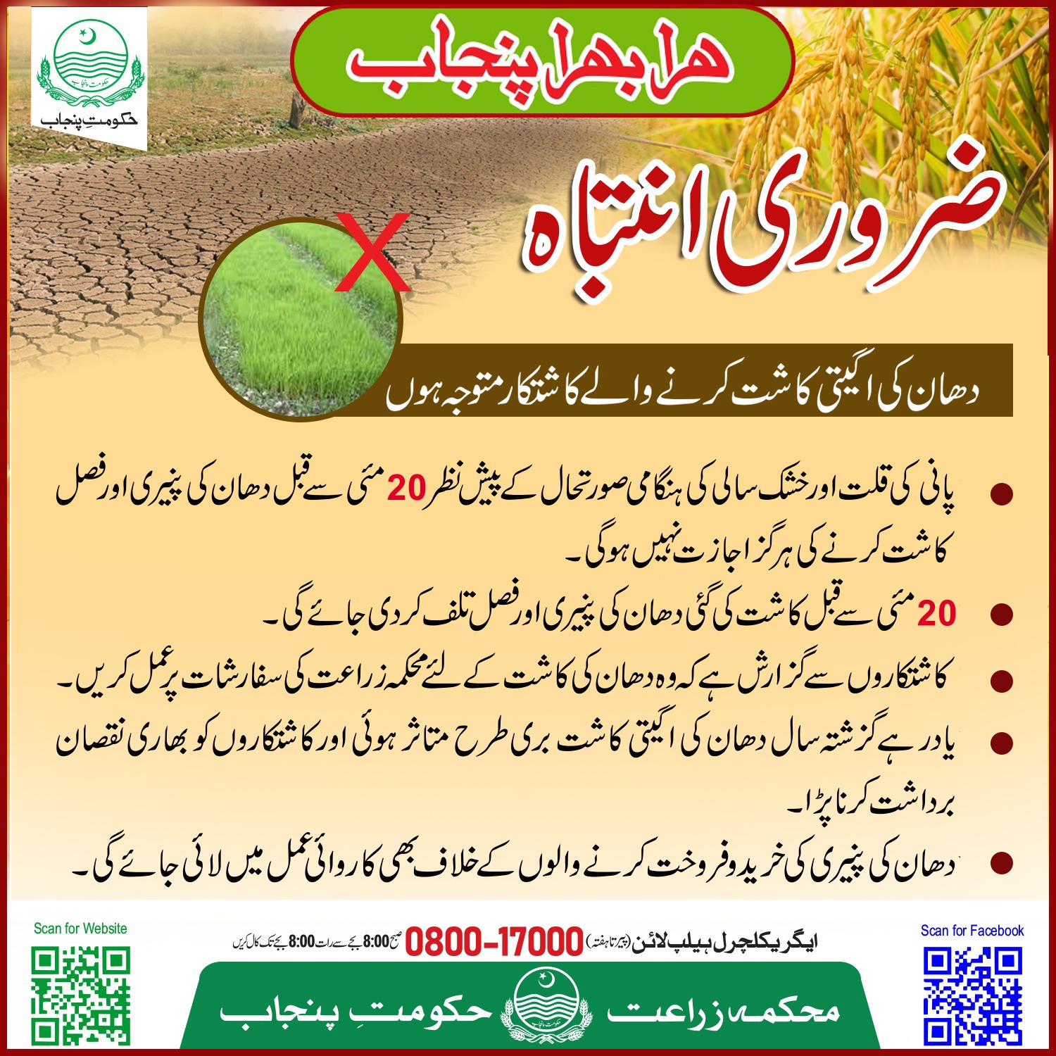 Importanct Notice for Early Rice Growers