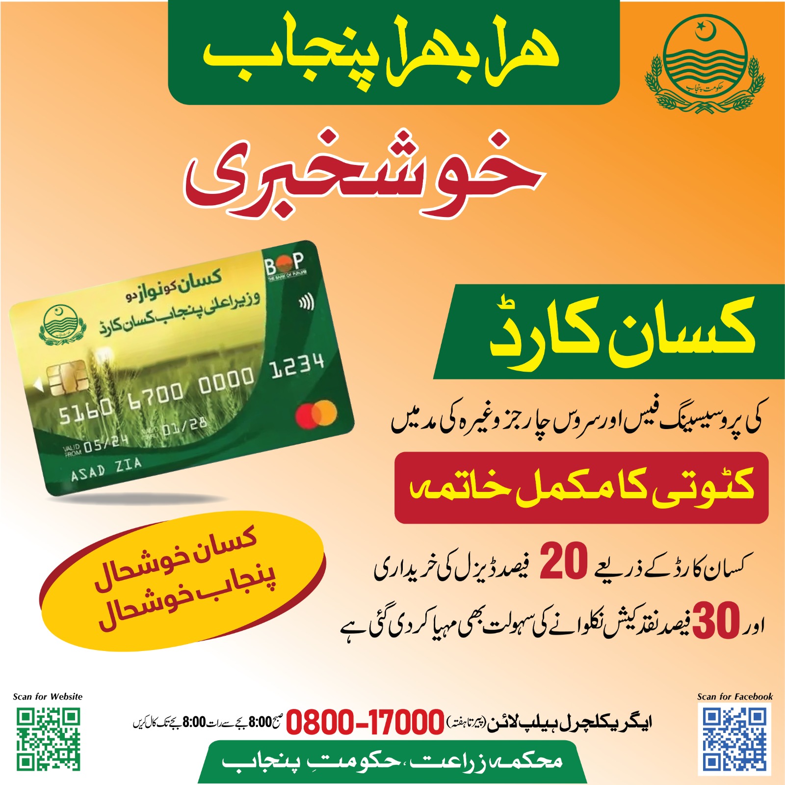 Important Announcement for Kissan Card Holders
