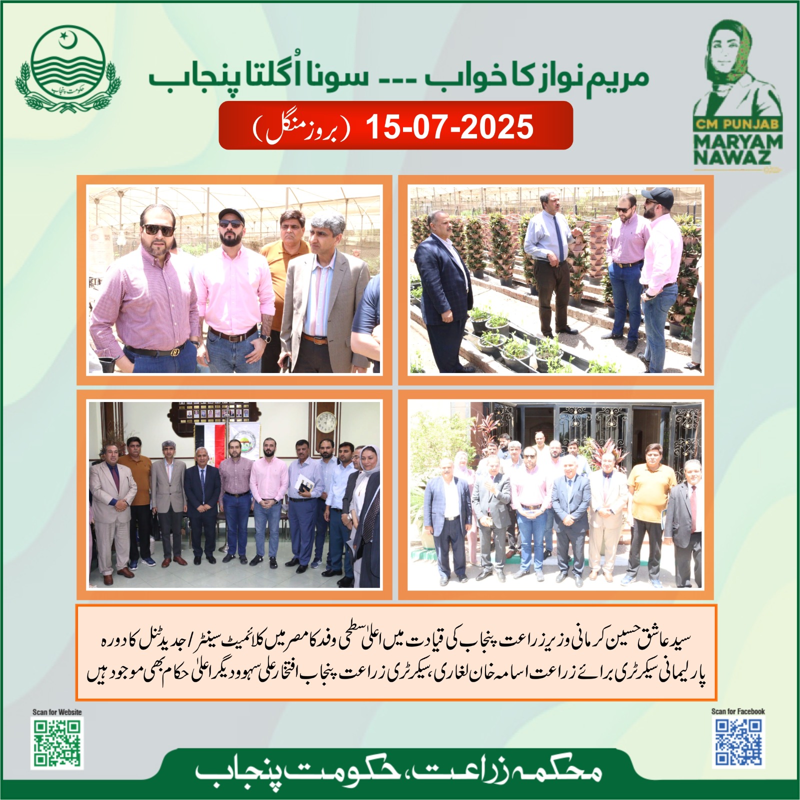 وزیر زراعت و لائیو سٹاک پنجاب سید عاشق حسین کرمانی کا سربراہی میں اعلیٰ سطحی وفد کا مصر میں جدید ٹنل کا دورہ