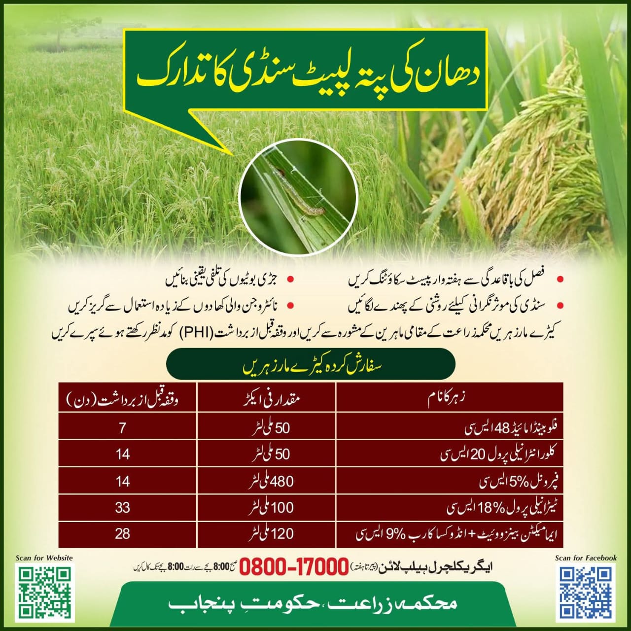 دھان کی پتہ لپیٹ سنڈی کا تدارک