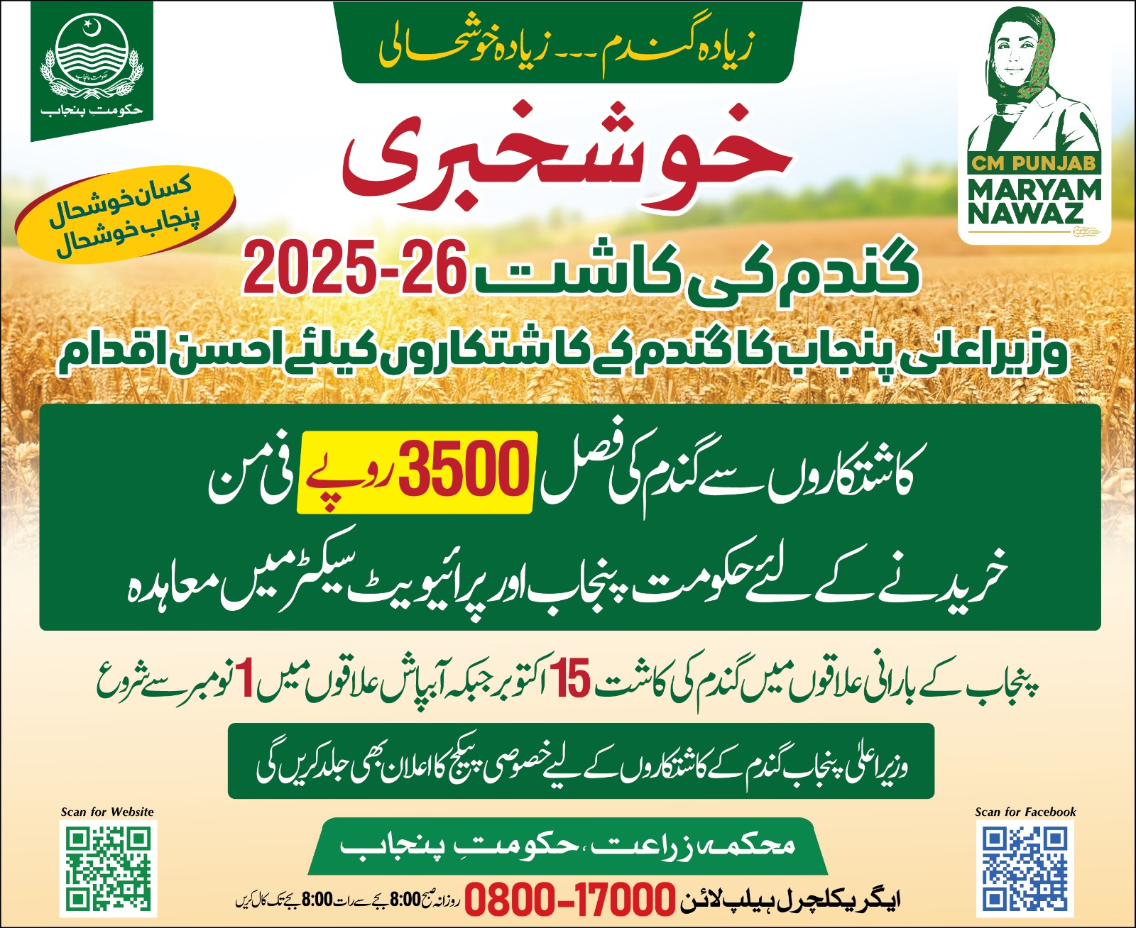گندم اگاؤ پروگرام 26-2025 کے تحت کاشتکاروں میں مفت گرین ٹریکٹرز کی تقسیم
